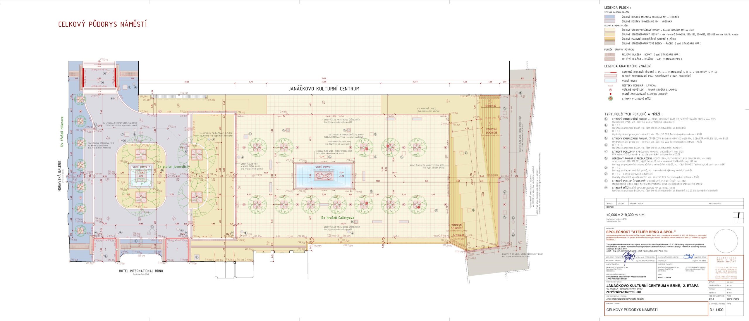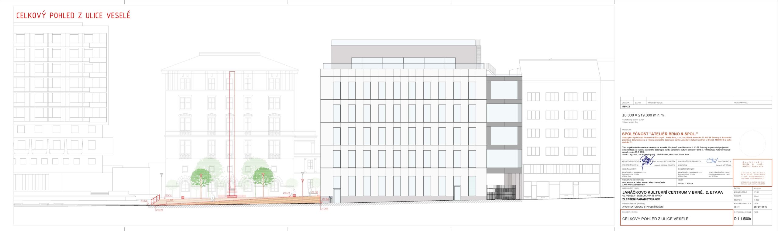 Vytvořená dokumentace „Změna stavby před dokončením (dále ZSPD)“ řeší DOPLNĚK A ZMĚNU PROJEKTU navazujícího okolí budovy koncertního sálu Janáčkova kulturního centra (JKC), a to v rozsahu tzv. piazzety, pojmenované náměstí Ludvíka Kundery. Jde o prostor před hlavním vstupem do JKC ohraničeného jižní fasádou budovy koncertního sálu, ulicí Veselou, severní hranicí pozemků Hotelu International Brno a východní fasádou Pražákova paláce se sídlem Moravské galerie. Pod částí této řešené plochy se nachází podzemní objekt SO 01.2.2 JKC – Technologické centrum vyprojektovaný v rámci ZSPD z 03/2021 a DPS. Doplněk a změna byla vyvolána novou majetkoprávní situací, kdy po letech jednání se městu podařilo v druhé polovině roku 2022 dohodnout se s majiteli Hotelu International Brno na odkupu pozemků se stávající trafostanicí hotelu a venkovním schodiště a na podobě dopravního řešení na piazzetě pro hotel vyhovující. V projektu se jednalo o zlepšení parametrů prostoru před budoucím hudebním sálem JKC ve smyslu optimalizace ekonomických nároků s promítnutím do funkčního uspořádání a reprezentativního estetického vzhledu jako celku.