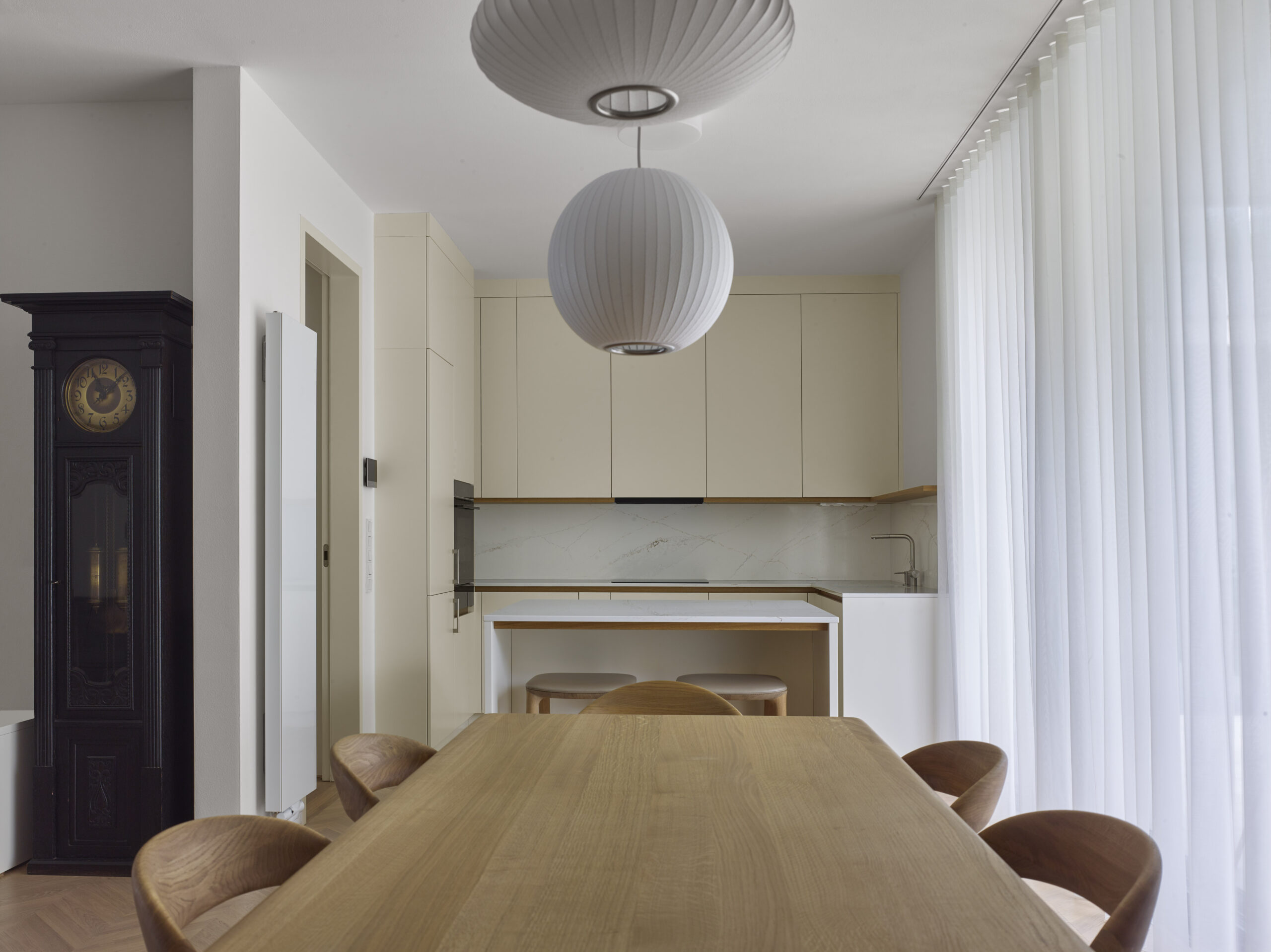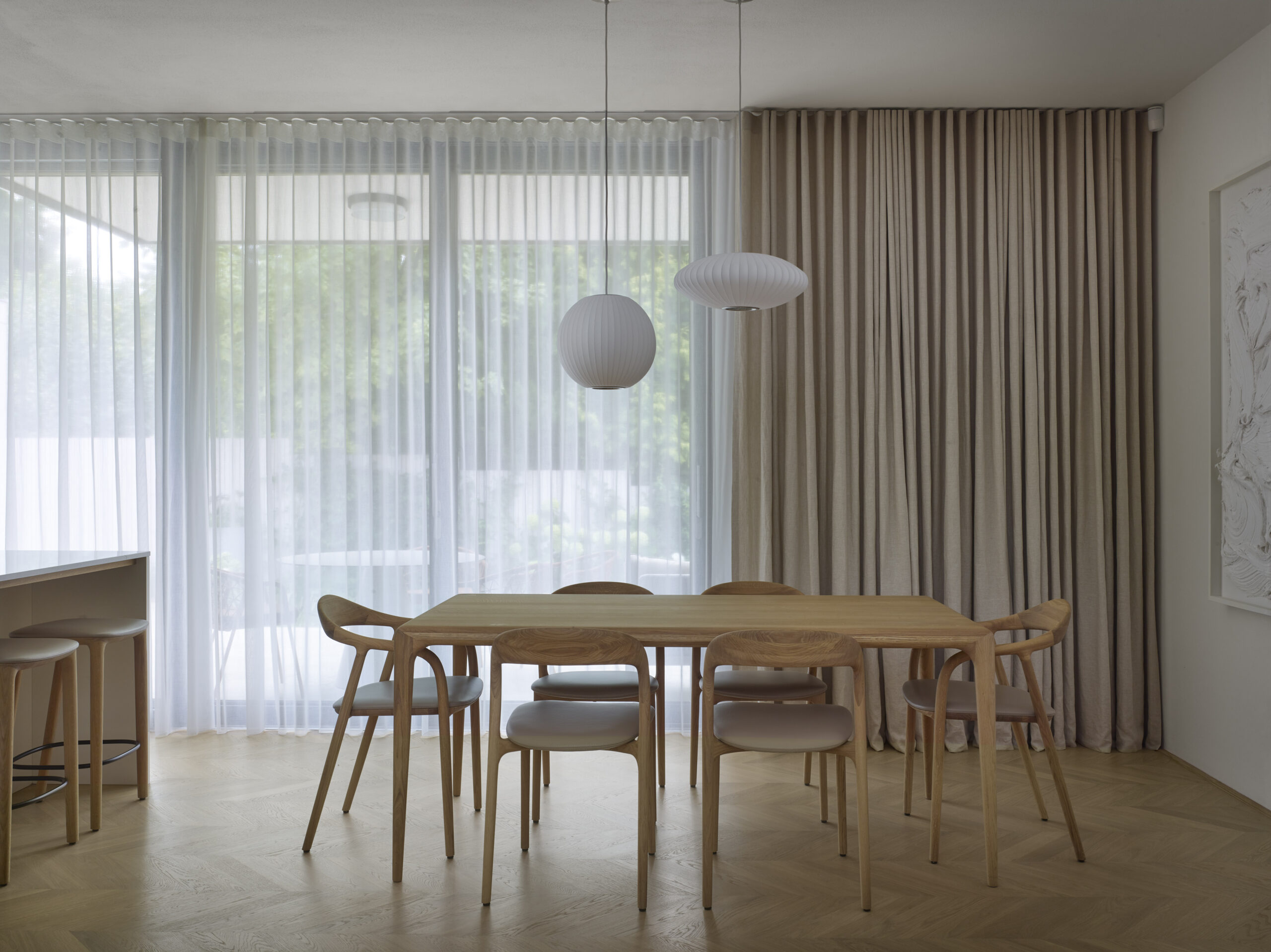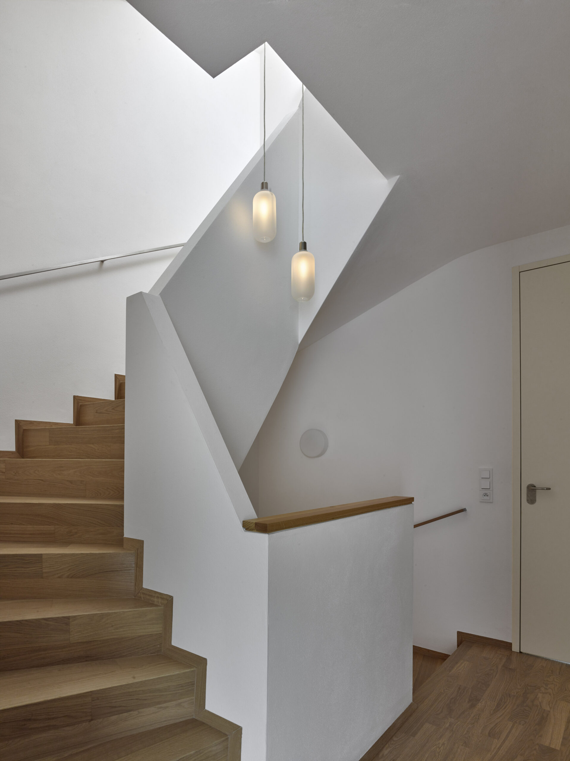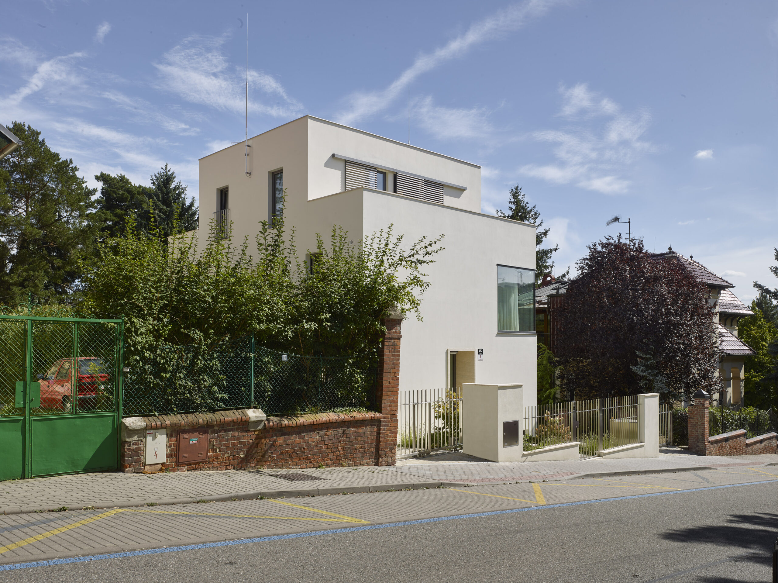 V 1.PP bude nadále sloužit ke skladování a jako technické zázemí objektu. V 1.NP došlo k přesunutí vstupu do čela domu. Vstupní hala bude navazovat na hlavní obytný prostor a jídelnu. V severozápadní části objektu je umístěno schodiště propojující všechna patra objektu. Rozšířením objektu došlo ke zvětšení kuchyně a jídelní části. 2.NP plní funkci klidové zóny objektu. Dispozičně je rozděleno na dvě části – ložnice pána a paní se šatnou a hygienickým zázemím a ložnice hosta s hygienickým zázemím. Směrem na severovýchod je nově proveden balkon. 3NP- nově dostavené patro je obdobně jako 2NP klidovou zónou. Jsou zde situovány 2 ložnice dětí s hygienickým zázemím. Z obou ložnic jsou přístupné nově zbudované terasy. V návaznosti a úpravy dispozic došlo ke změnám v kompozici fasád. Severovýchodní a jihozápadní stěny jsou členěny výraznými prosklenými plochami. V průběhu výstavby došlo k rozšíření zadání o přístavek s garáží se zelenou střechou a do zahrady se zimní zahradou. Celkově došlo k maximálnímu využití původního objektu a v nové formě dobře zapadl do historické zástavby.
